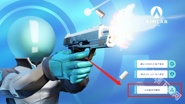 打开瞄准实验室(即Aim Lab)时,新用户需要先注册账号才能登录;若没有账号且不想注册,玩家可点击下图所示位置以游客身份登录游戏。