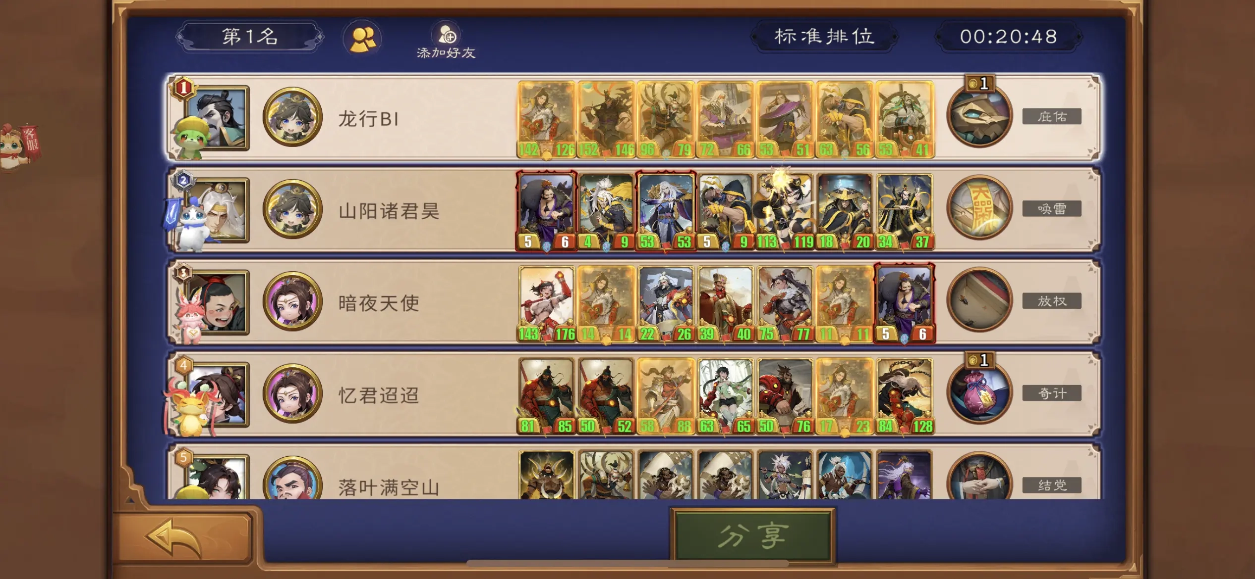 推荐阵容:关羽+陆逊+驯蛇师+程昱+侍郎+司马徽