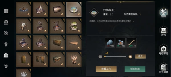 要搭建复活祭坛,第一步得先解锁前置技能:家具设备制造。