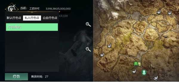 安放完成后,在复活界面选择【私人疗伤点】就能查看祭坛的位置,这样就能在个人领地内实现复活了。