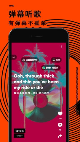 内容界面添加了弹幕功能,用户的评论会伴随音乐,在循环播放的动图上滚动显示,使这些评论也成为内容的组成部分。