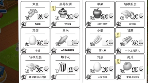 卡通农场国际服,也就是Hay Day,玩法正如其名。玩家在游戏里可以化身农场主,每日都能自主栽种小麦这类作物,还能饲养鸡鸭等小动物,以此获取可观收益。要是能及时提升农场等级,还能快速解锁并建造烧烤架之类的各类设施。
