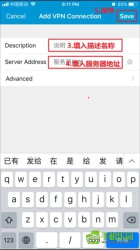 填入“描述”(可自定义名称,任意填写),填入“服务器地址”,然后点击“Save”按钮完成保存。