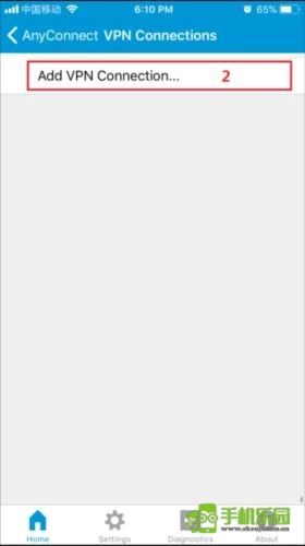 打开AnyConnect,点击“Connections”,进入新增服务器地址的设置界面。