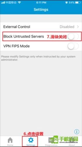 点击“Settings”选项,然后关闭“Block Untrusted Servers”功能。
