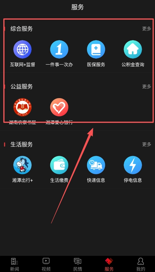 主界面设有新闻、直播、政务三大板块,用户可以自由浏览本地头条资讯,观看实时直播内容,也能进入政务模块办理缴费、预约等各类业务。