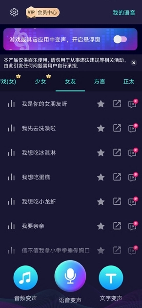 丰富的变声音效:这里有各种各样的变声效果可供选择,无论是可爱的萝莉音,还是成熟的大叔音,都能轻松找到,充分满足不同用户的个性化需求。