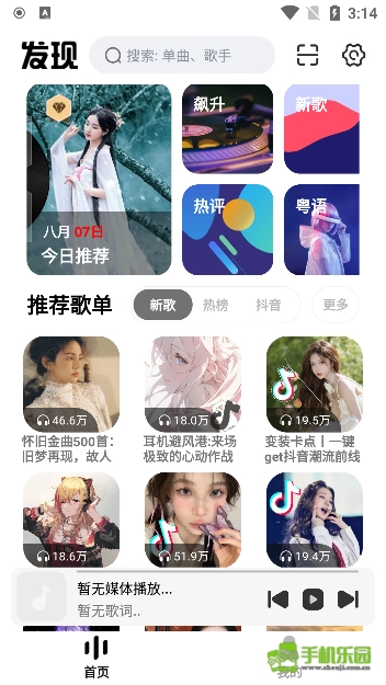 打开软件在首页可以看到许多的歌单
