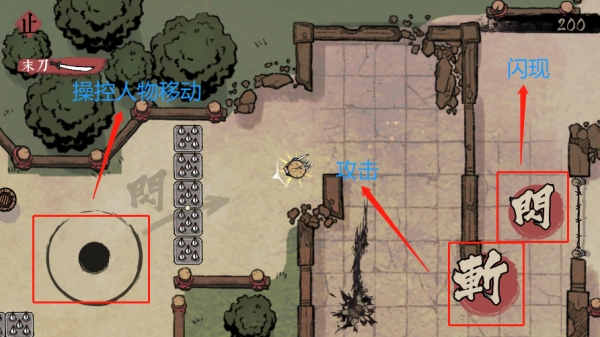 其次要了解操作界面中的基础技能设定:玩家仅拥有三个基础技能,除了最核心的移动功能外,还能对敌人挥刀攻击,或是通过冲刺发起进攻——因此上手难度相对较低。尽管基础技能简单,但应对不同敌人时可选用的兵器种类十分丰富,像叶刀、飞刀、投雷、飞镖等,这些兵器能显著提升清兵的速度与效率。