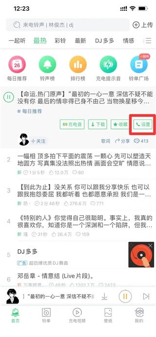 音乐、情感语录、口白、Mc、电音、DJ、串烧舞曲,还有热门的抖音短音频,点一下就能播放,一键设置超简单!轻松搞定铃声、彩铃(炫铃)、短信提示音和闹铃,甚至能给特别的联系人设置专属来电铃声哦!
