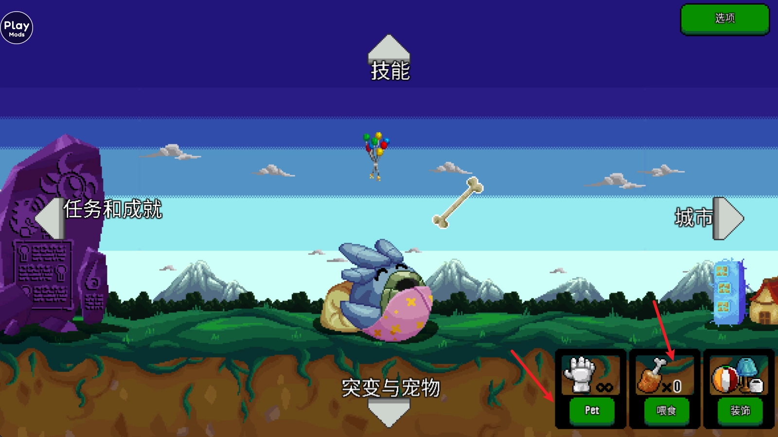 进入游戏后,我们能在宠物界面通过与宠物玩耍、给宠物喂食的方式提升它的心情值,进而获取点数奖励。