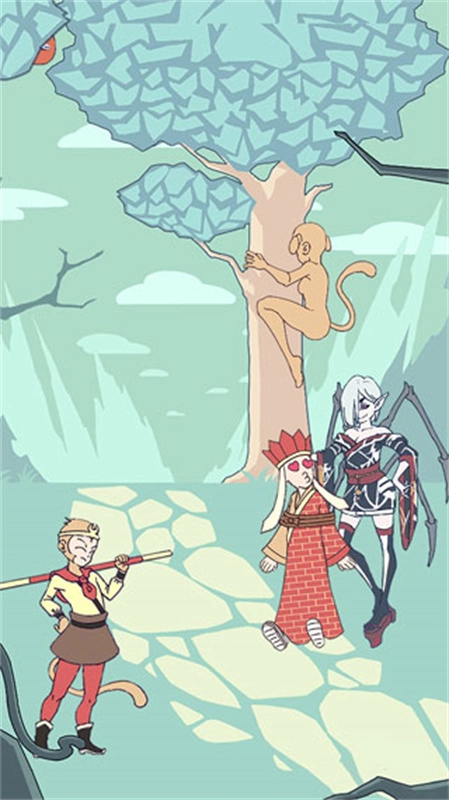 点击唐僧身后的云彩,就能获取云彩!接着点击右上角的菜单按钮,里面有个指向右边的三角形指示标,把它拿到手。之后会出现第二页,在第二页里,朝后羿站着的悬崖右下角发射一炮,就会出现箭。把箭交给后羿,让他射鹰。回到第一页,找到云彩!把云彩给唐僧。这个操作手速快一点,就算是单身狗也能轻松完成。