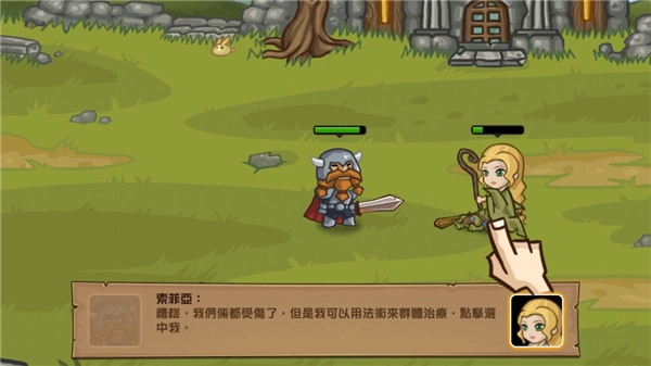 拖动光标,将它放置在战士身上,即可治疗战士;