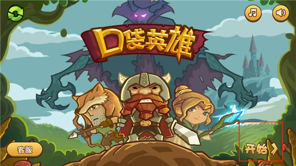 打开进入口袋英雄游戏,点击开始;