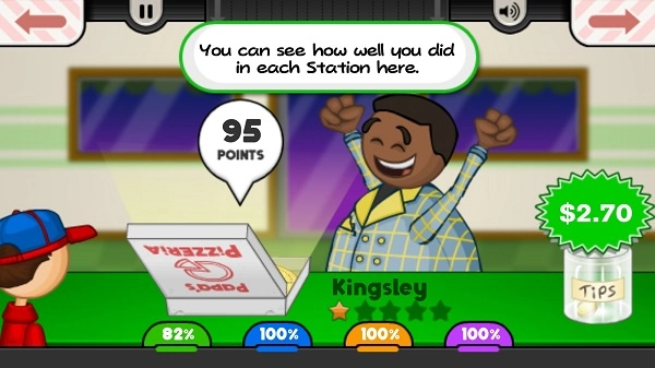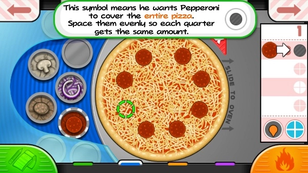 玩家按照顾客要求的时间来烘烤披萨。顾客能选择把披萨烤制到计时器刻度盘上的不同位置。等披萨烤好后,玩家点击它就能将其移至下一个环节。