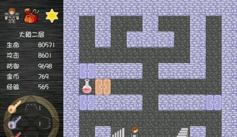 在冰四层,撞墙获取隐藏的宝石与药水,损耗2414点生命值击杀蝙蝠,将攻击力提升到851,随后购置齐全所有防卫装备,对抗石头人后,终于得以继续前进。