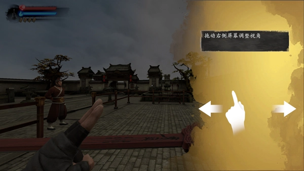 首次进入游戏的玩家会触发新手教程,通过滑动屏幕右侧能够调节视角。