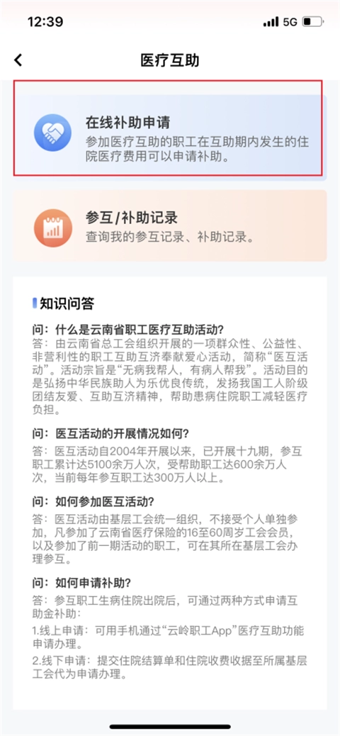 接着返回首页,点击"医疗互助"。