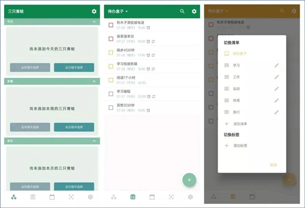 青蛙Todo是一款令人眼前一亮的小清新清单与待办应用,它以极简设计为核心,整体界面唯美雅致,支持多主题自由切换,清新风格搭配超高颜值,视觉体验十分舒适。目前软件完全免费,功能全面且实用,能助力你高效完成时间管理、日程规划,以及清单与待办事项的记录。不仅如此,它还能进一步帮你优化时间安排、梳理待办清单,有效提升办事效率与执行力。作为清单类软件,它也配备了番茄钟和白噪声等实用功能——你既可以借助番茄工作法提升专注度与工作效率,也能通过白噪音背景音营造沉浸式的专注氛围。