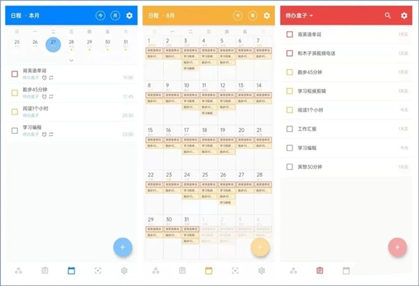 月视图支持左右滑动切换月份,通过它你能清晰查看每个月的待办事项。