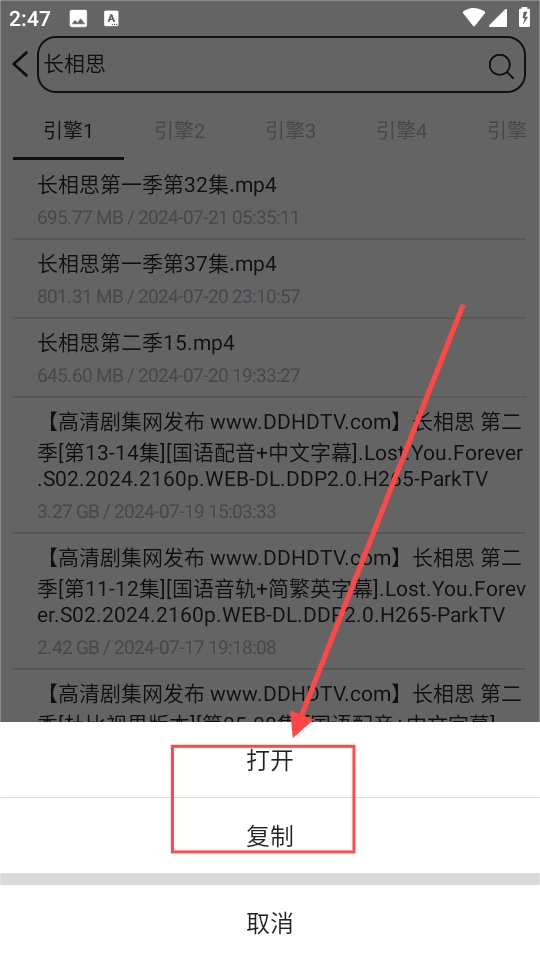 以“长相思”为例,当您输入关键词并点击搜索按钮后,系统会为您呈现相关的资源列表。