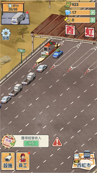 记得尽快解锁首批设施,提升收费效率,不然车流增多就容易引发拥堵,导致顾客满意度降低。