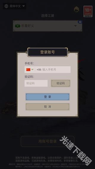 打开这就是江湖,选择游戏服务器,点击账号登录;