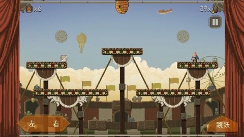 在游戏里,你会置身于一场陷入疯狂的马戏团表演之中,需要时刻躲避各种陷阱,竭尽全力生存下去,成为最终的幸存者。首先我们要熟悉游戏的操作方式:只需点击屏幕下方的左右按钮就能控制角色移动,按下跳跃按钮可让角色起跳,快速点击两次跳跃按钮还能完成二段跳。按键的布局可以在设置界面进行调整,流畅的操作体验会让你毫无负担。