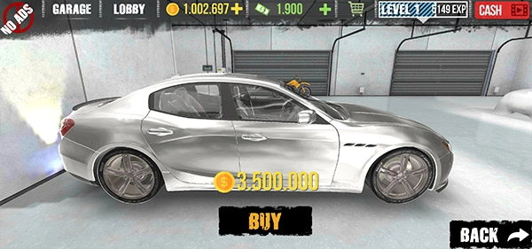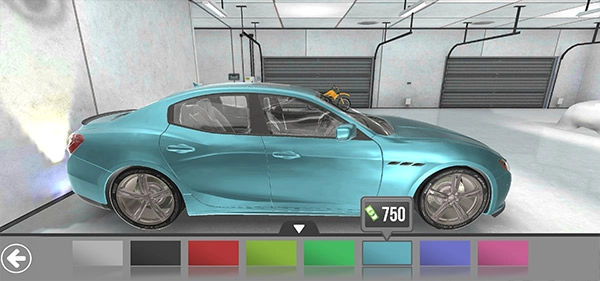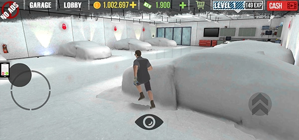 购买完成后,我们会进入车库,接着把左下角的摇杆滑动到一辆汽车模型旁边。