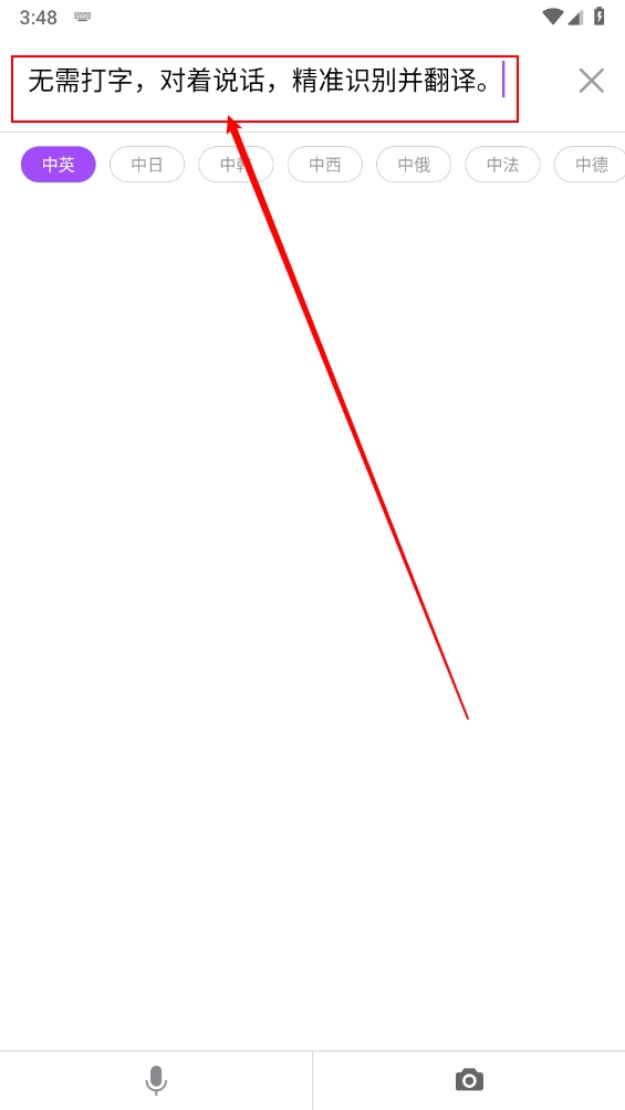 还可以点击上方的翻译框输入相关句子。如图所示。
