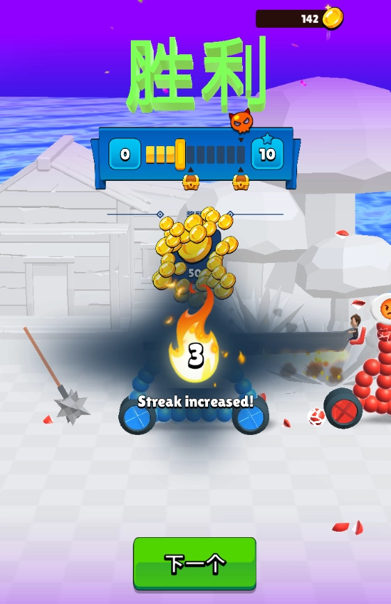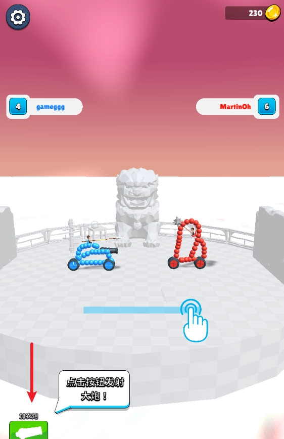 在接下来的关卡里还会有大炮出现,点击左下角的按钮就能发射。