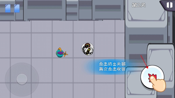 游戏的第二种玩法是:点击右侧按钮,把头部扔出去,借助惯性攻击敌人;要是想收回扔出去的头部,只需再次点击右侧按钮,头部就能回到身体上。