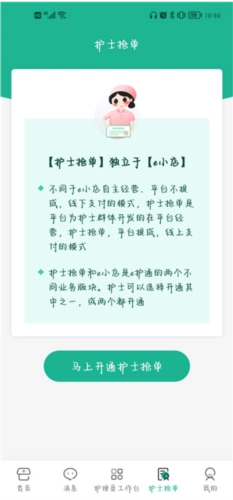 进入页面后点击马上开通护士抢单。