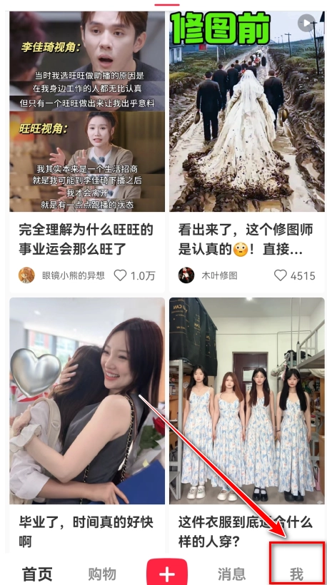 打开小红书,点击右下角我。