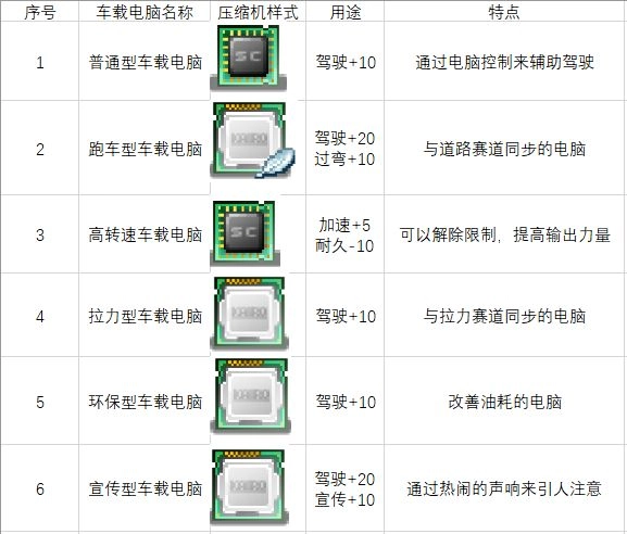 车载摄像头:数据分析的效率有所提升。表面上看它似乎没什么特别的用处,但考虑到游戏里有大量场景都需要用到研究数据,安装了车载摄像头之后,比赛过程中技术点的获取速度会比未安装时更快。