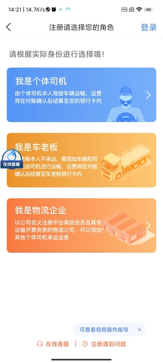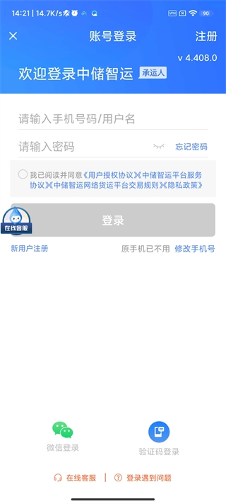 打开中储智运,点击[注册];