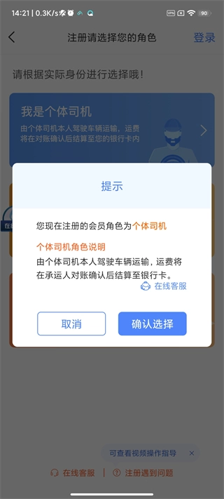 请选择要注册的角色,一旦选定将无法更改,请根据对应说明进行选择。