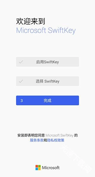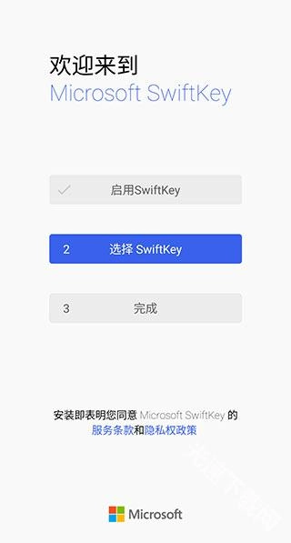 之后会自动跳转至微软输入法的引导界面,随后点击第二步,将微软输入法设置为默认输入法。