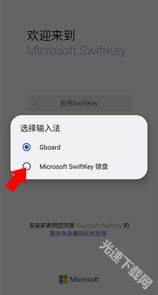 点击后通常会弹出下方的窗口,由于手机系统不同可能会有差异,但只需选择微软输入法就行