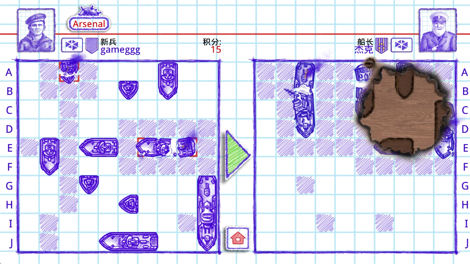 正式开始后,点击对方的格子就能发射导弹进行攻击,要是没击中敌人的战舰,就会交换攻击方。