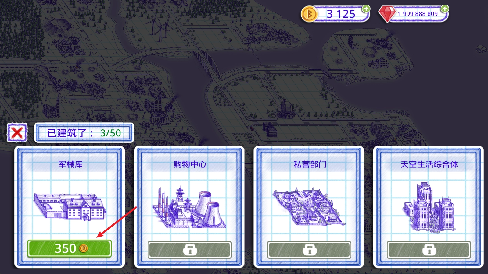 点击此处右下角的锤子图标,进入界面后,点击已存在的建筑,就能消耗金币进行建造。