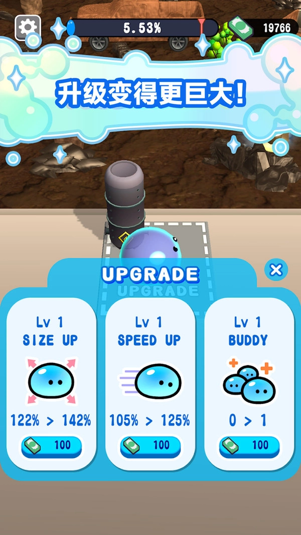 这款游戏和常规的“赚金币升级”模式不一样,它是直接提升史莱姆自身的各项属性,以此来强化它的清洗能力!