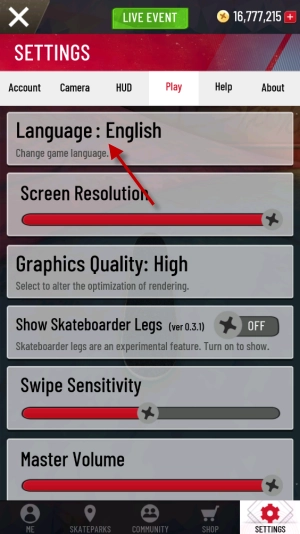 进入游戏后默认是英文模式,你需要找到设置选项并点击,接着选择第四个“Play”选项。