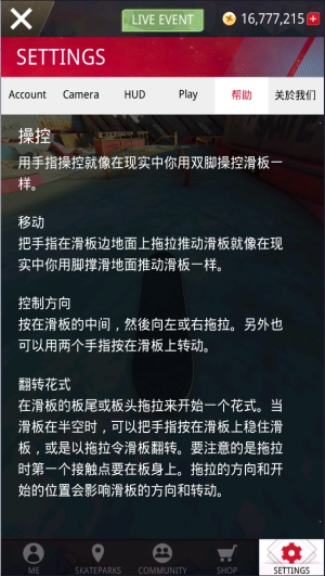 控制方向的操作方式如下:按住滑板后,向左或向右拖动就能使其改变方向;另外,也可以用两根手指按压在滑板上,以此来让它转动。