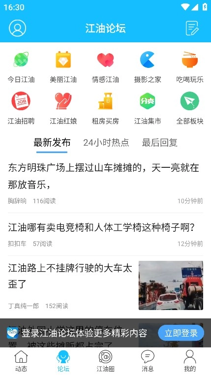 江油圈,查看众多本地用户发布的动态信息;