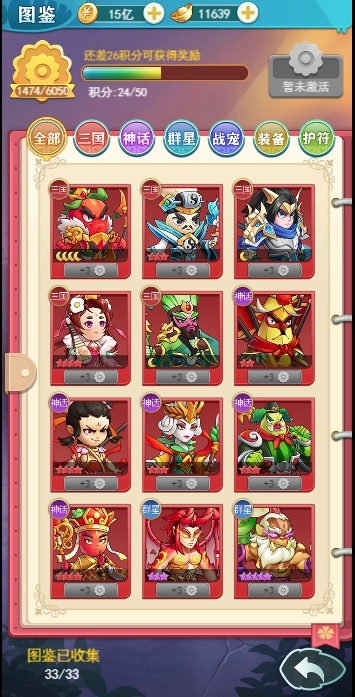 图鉴涵盖英雄(包含三大派系)、战宠、装备和护符等类别,当首次获取这些物品或对其进行升星操作时,就能领取对应的积分。