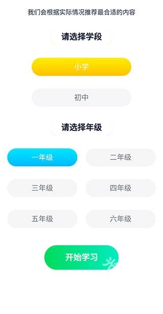 接下来我们要选择学段与年级,这样才能匹配到更精准的学习内容。