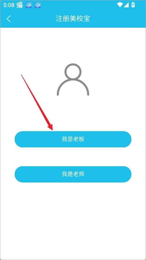 打开美校宝App后,点击注册并登录账号。