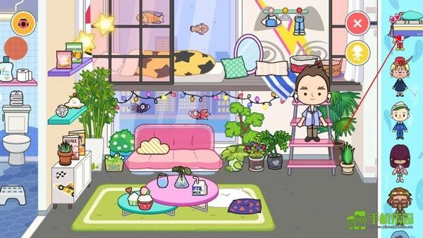 把人物安置到房间里后,就能点击已购买的家具用品来装饰房屋了。