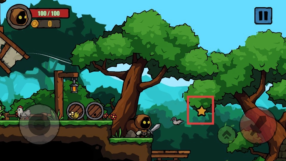 通过左侧的【虚拟摇杆】来操控移动方向,右侧的【攻击按钮】用于发动攻击,你可以在场景里探索并向前推进。